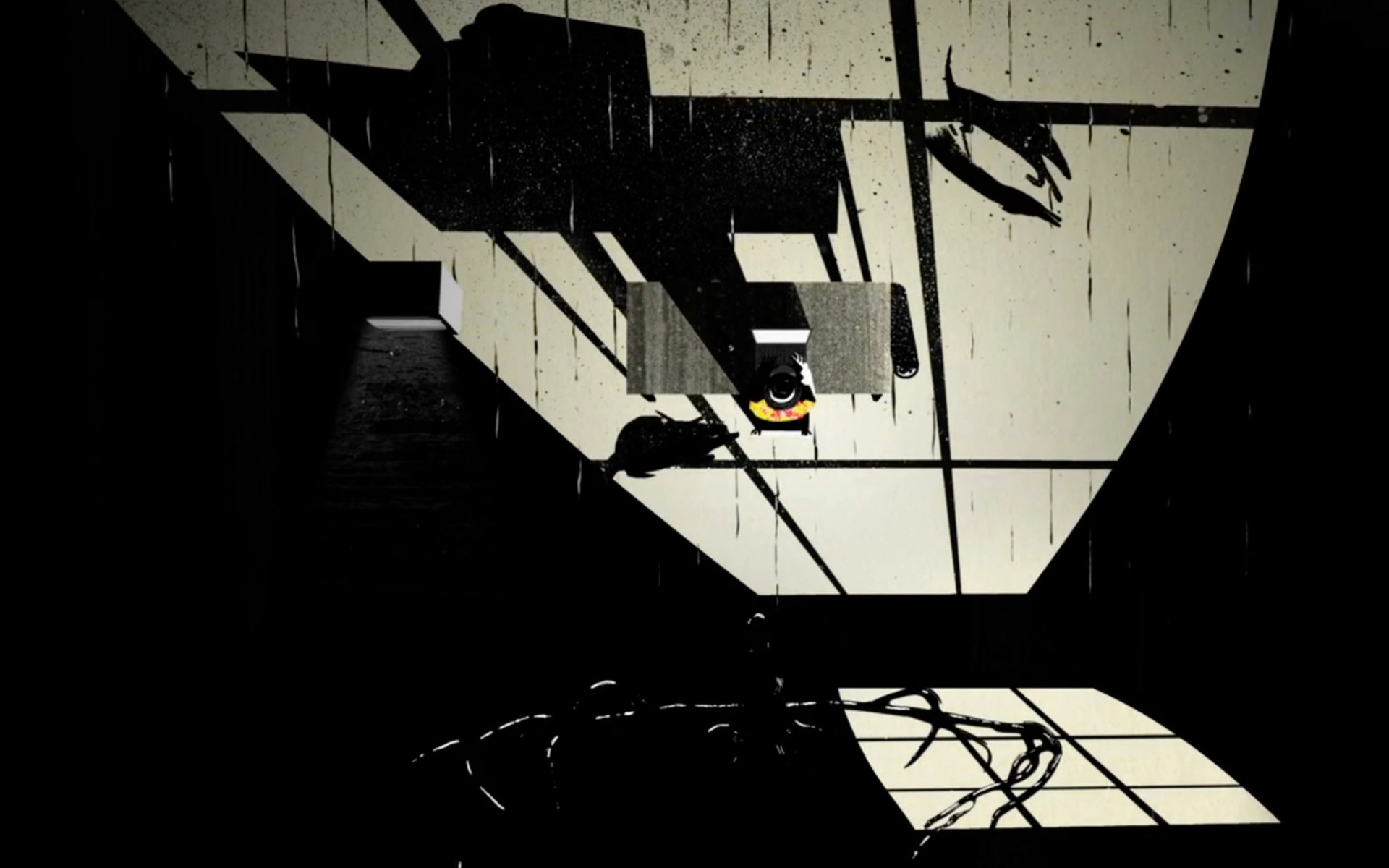 The script was golden. We started doing concept paintings – I remember creating a weird image of Hunter with an abstract crocodile in his head. That particular image wasn’t right, but these explorations helped us to determine the tone and feel of the piece. At this point, Joe Mullen helped us dial these into a graphic, repeatable style. Once we figured out the look, we brought in more of the team for storyboarding - looking for visual metaphors in the script. We ended up with an amazing string of ideas, but it was important that the mechanics used for the transitions between scenes related to or offered a perspective on those scenes.